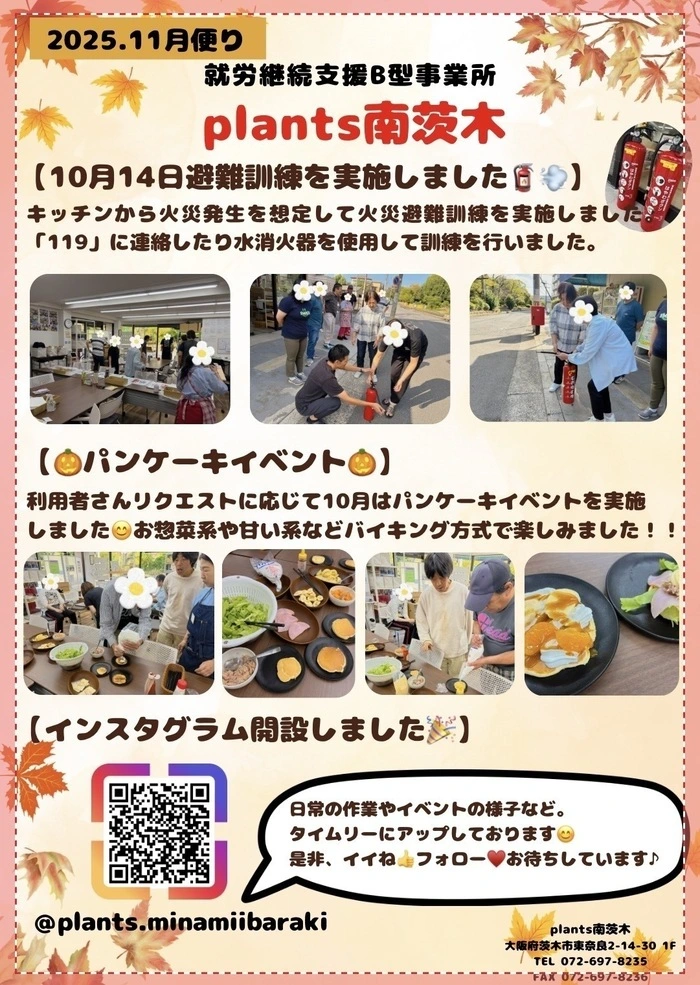 10月は主にパンケーキイベントや避難訓練などを行いました🌸